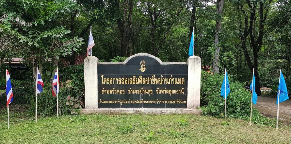 จึงทรงมีพระราชดำริอนุรักษ์ และฟื้นฟูงานฝีมือพื้นบ้าน โดยโปรดเกล้าฯ ให้เปิดสอนงานหัตถกรรมในหลายพื้นที่ และให้ก่อตั้งมูลนิธิขึ้นเมื่อวันที่ 21 กรกฎาคม พ.ศ. 2519 พระราชทานชื่อว่า “มูลนิธิส่งเสริมศิลปาชีพ ในพระบรมราชินูปถัมภ์” เพื่อรวบรวมบรรดาผู้ที่มีฝีมือทั่วทั้งประเทศ ไปพัฒนาให้การทอผ้ามีคุณภาพ เป็นความต้องการของตลาด สร้างรายได้ให้กับชาวบ้าน จนเกิดมีแม่ครูหลวง แม่ครูช่าง ต่อยอดไปสู่เครือข่าย กระจายไปอยู่ตามภูมิภาค รวมทั้ง จ.อุดรธานี ศูนย์ศิลปะชีพไม่ได้มีเพียงแค่ที่ “กุดนาขาม สกลนคร” หรือไม่ใช่เพียงที่ “ศูนย์ศิลปะชีพ บางไทร”